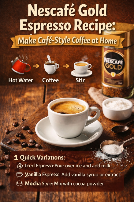 Love espresso but don’t have a coffee machine? Nescafé Gold makes it easy to enjoy rich, aromatic coffee at home. Here’s a simple recipe to create a café-style espresso in minutes. What You’ll Need Step-by-Step Nescafé Gold Espresso Recipe Your rich and smooth espresso is ready to enjoy! ☕ Tips for a Perfect Espresso Why Nescafé Gold? Quick Variations Final Thoughts With Nescafé Gold, you don’t need an espresso machine to enjoy a perfect cup. Follow this simple recipe and enjoy café-quality espresso at home anytime.