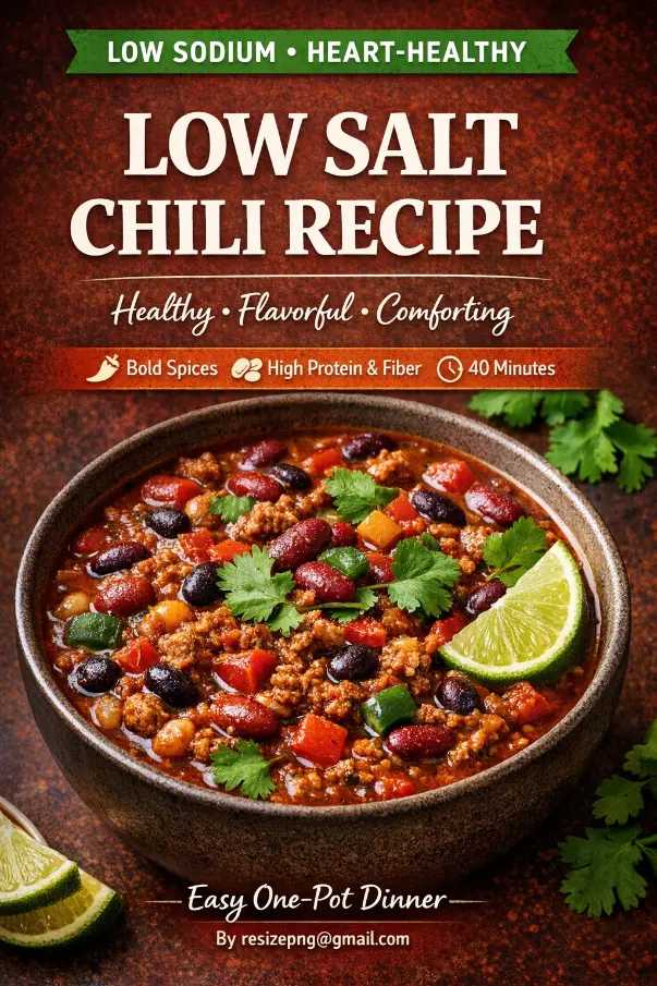 If you love hearty, spicy chili but want to cut down on sodium, this Low Salt Chili Recipe is perfect for you. Packed with protein, fiber, and rich flavors from fresh ingredients and spices, this chili proves that reducing salt doesn’t mean sacrificing taste. It’s a comforting meal for lunch or dinner and pairs wonderfully with rice, cornbread, or even a fresh salad.