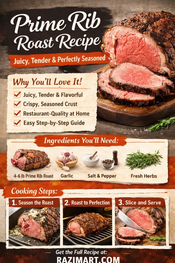 Looking to make a show-stopping main dish for dinner or special occasions? This Prime Rib Roast Recipe delivers tender, juicy meat with a flavorful crust that will impress family and guests. Perfect for holidays, celebrations, or a luxurious weekend dinner, prime rib is a classic roast that’s easier to make at home than you might think.